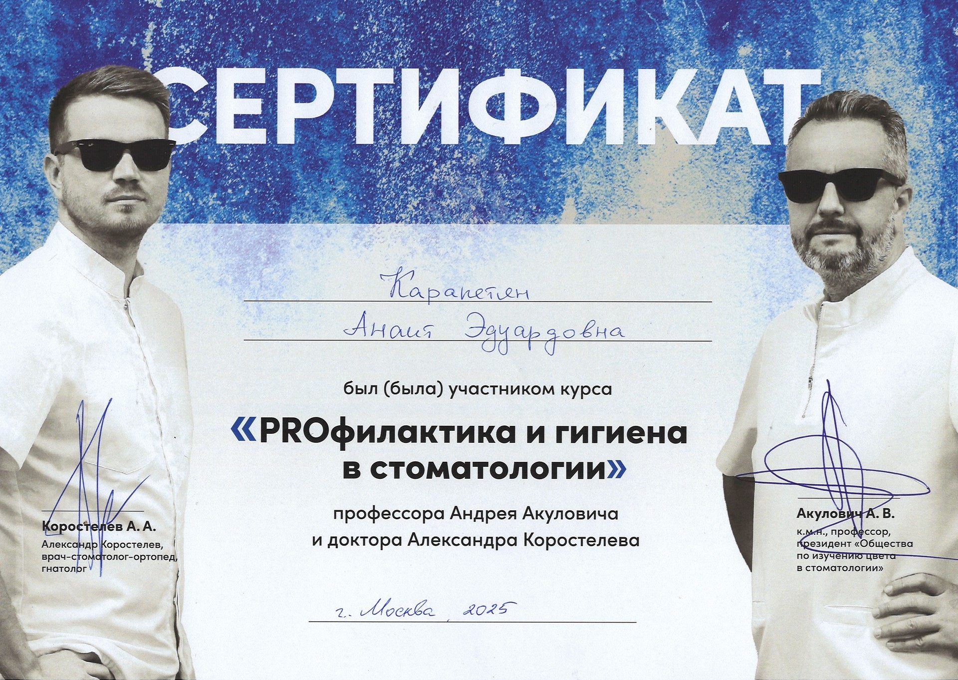 2024 год. Окончила «Брянский базовый медицинский колледж» город Брянск. Специальность «Стоматология профилактическая»