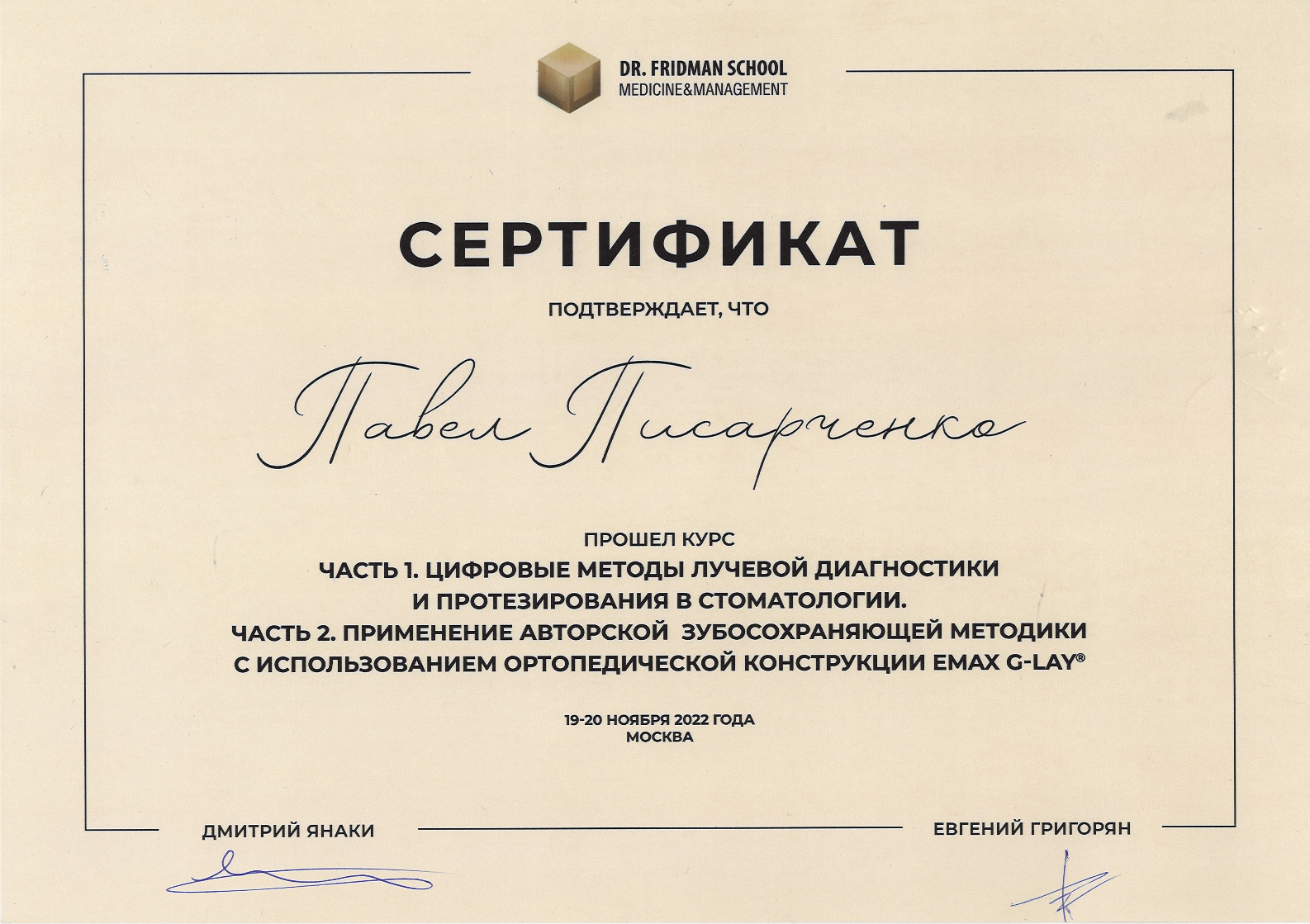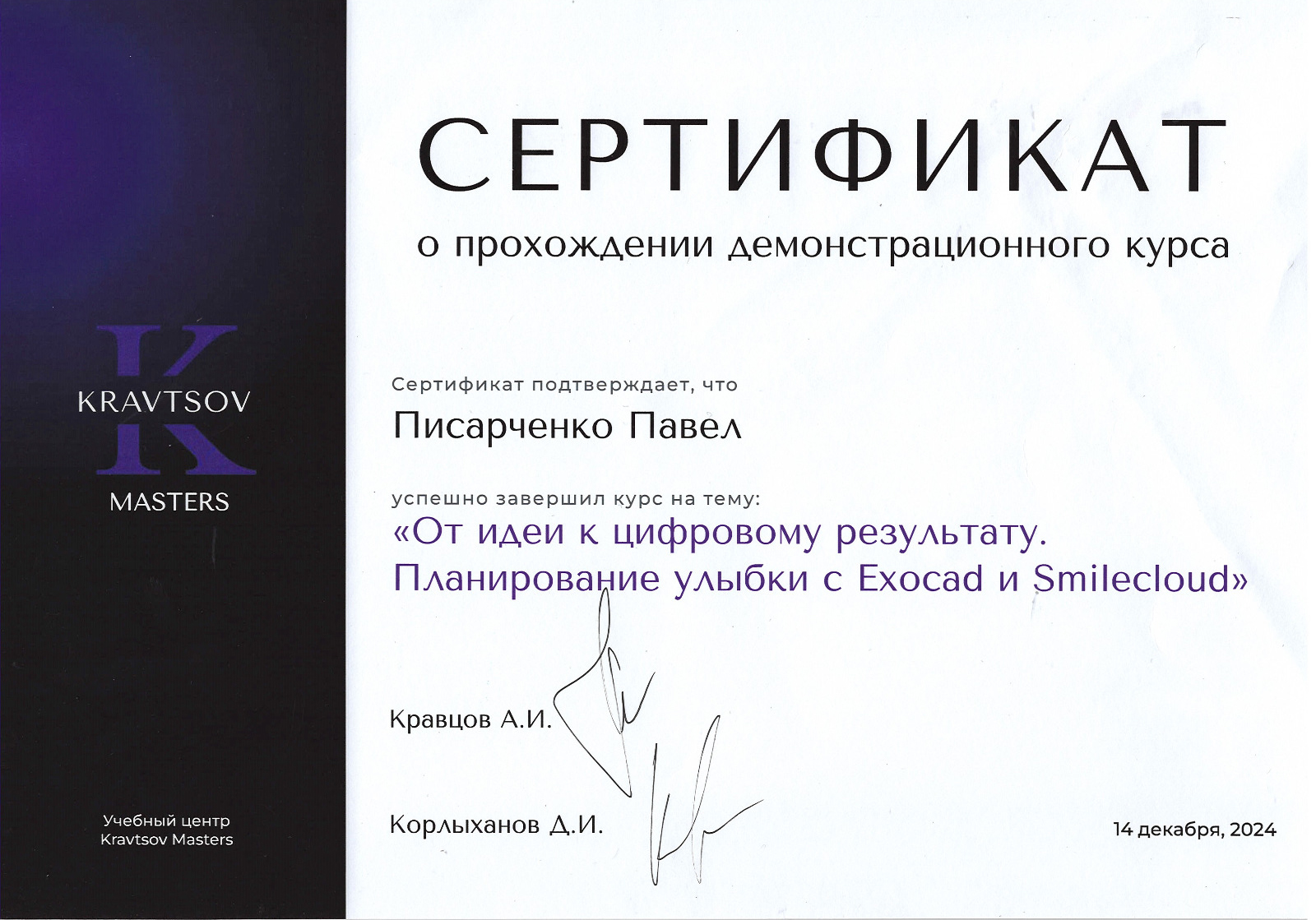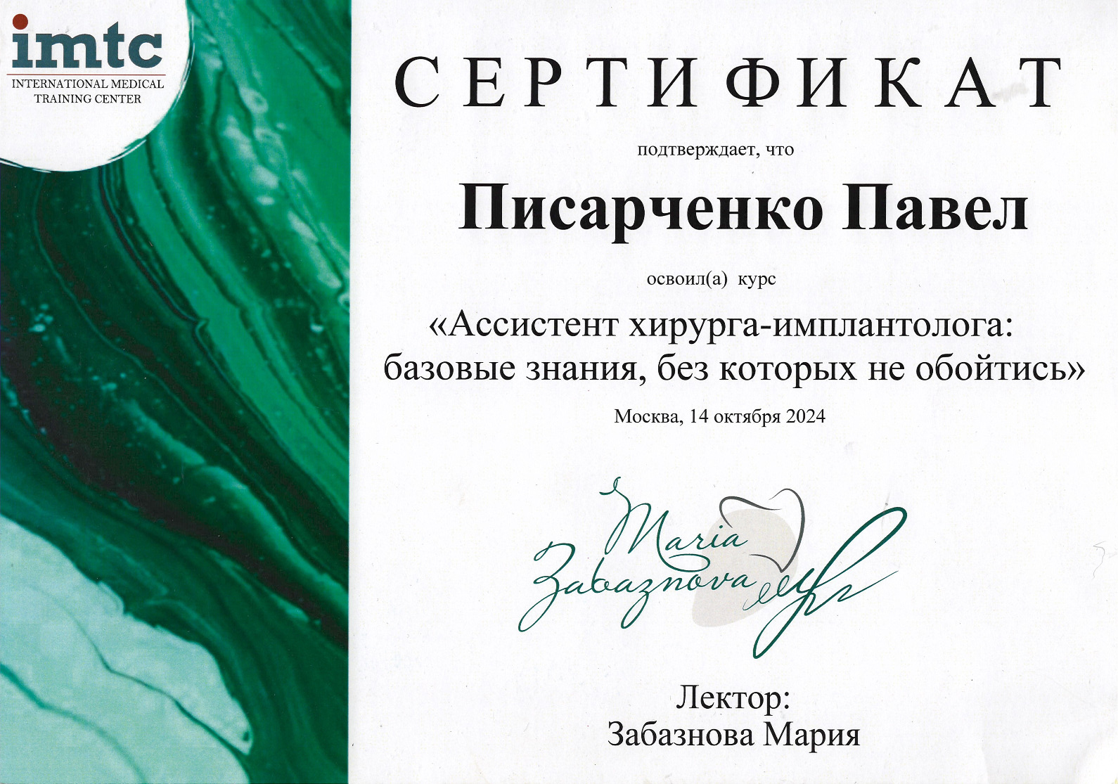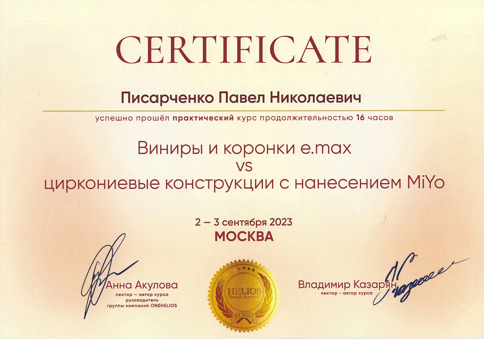 2016 год. Окончил «Смоленский государственный медицинский университет» Специальность «Стоматология» Квалификация Врач-стоматолог общей практики