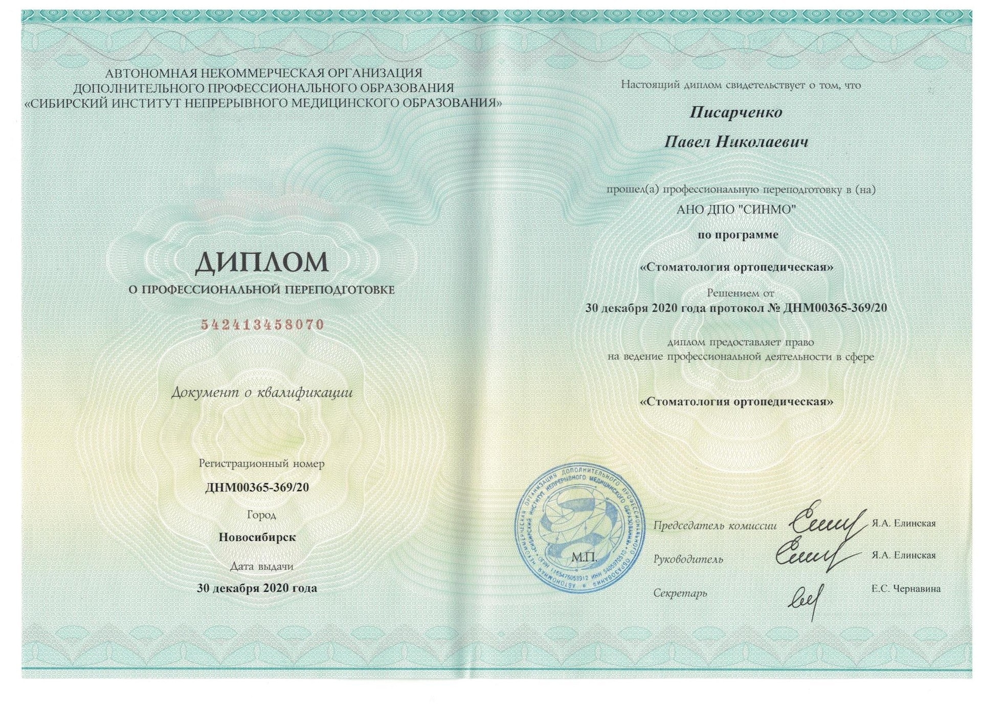 2018 год. Диплом об окончании ординатуры. Специальность «Стоматология ортопедическая» Врач-стоматолог ортопед