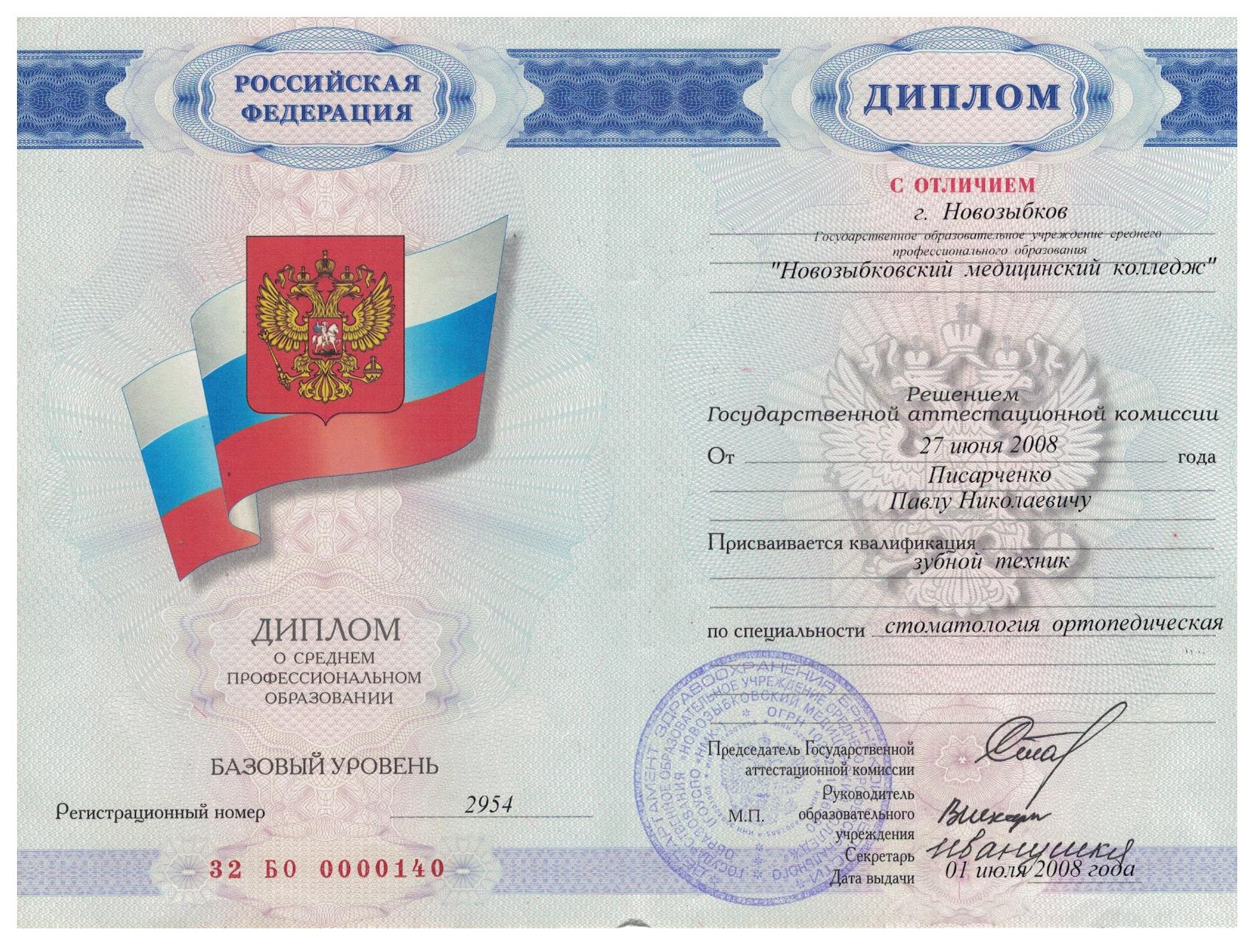 2008 г. — «Новозыбковский медицинский колледж». Квалификация: зубной техник по специальности: стоматология ортопедическая.