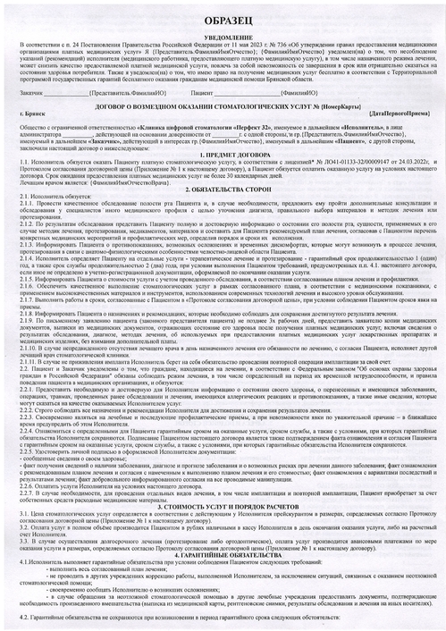 1. Договор на оказание медицинских услуг на 2 лица