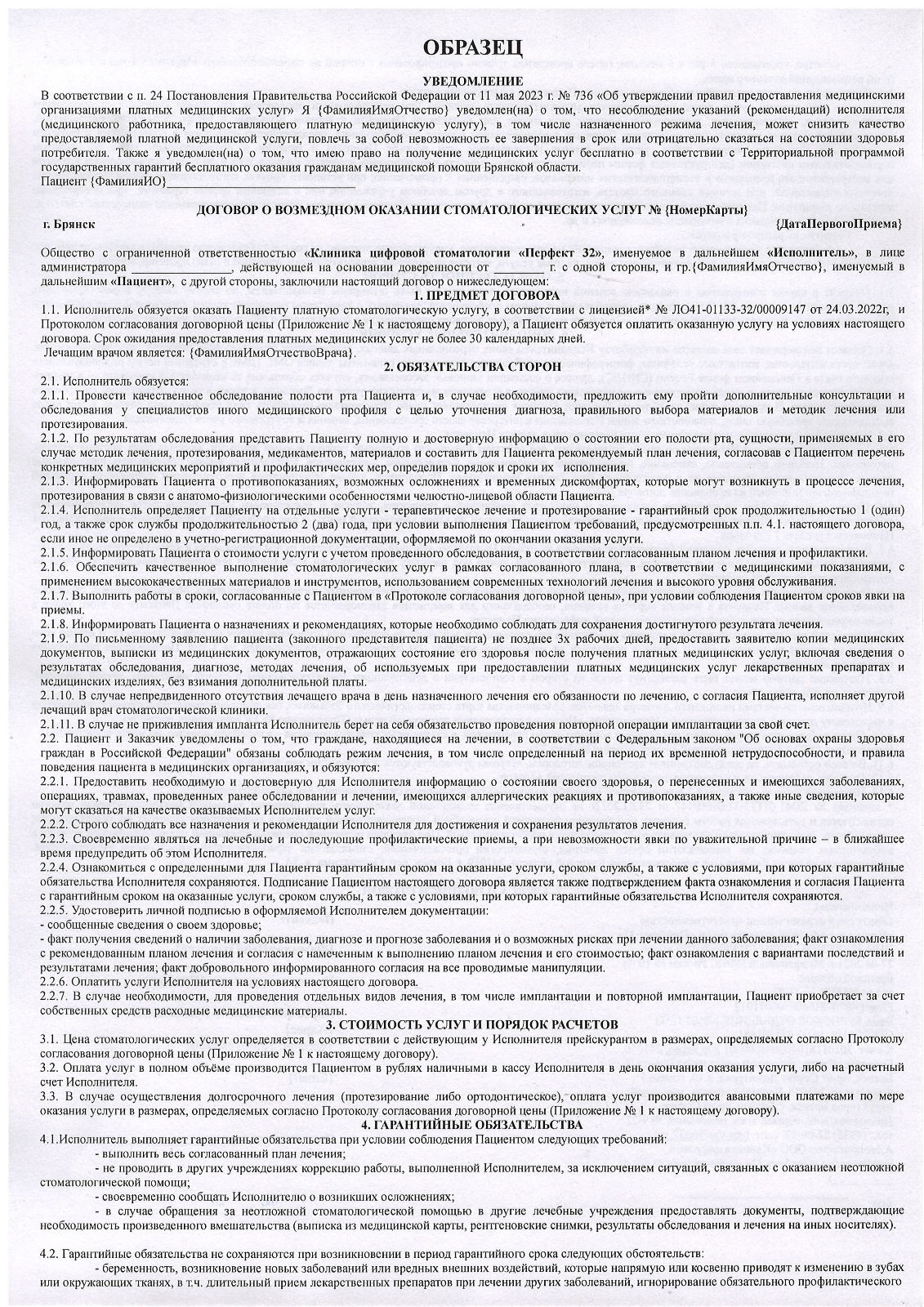2. Договор на оказание медицинских услуг на 3 лица