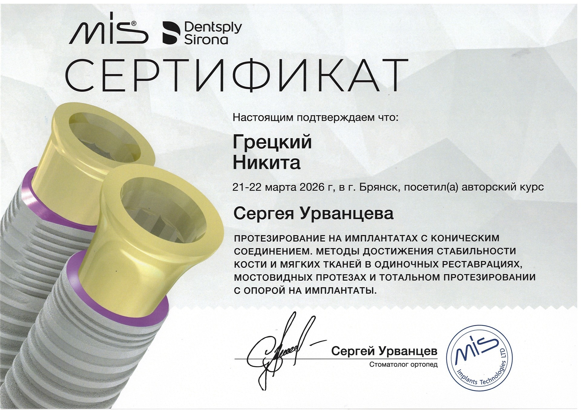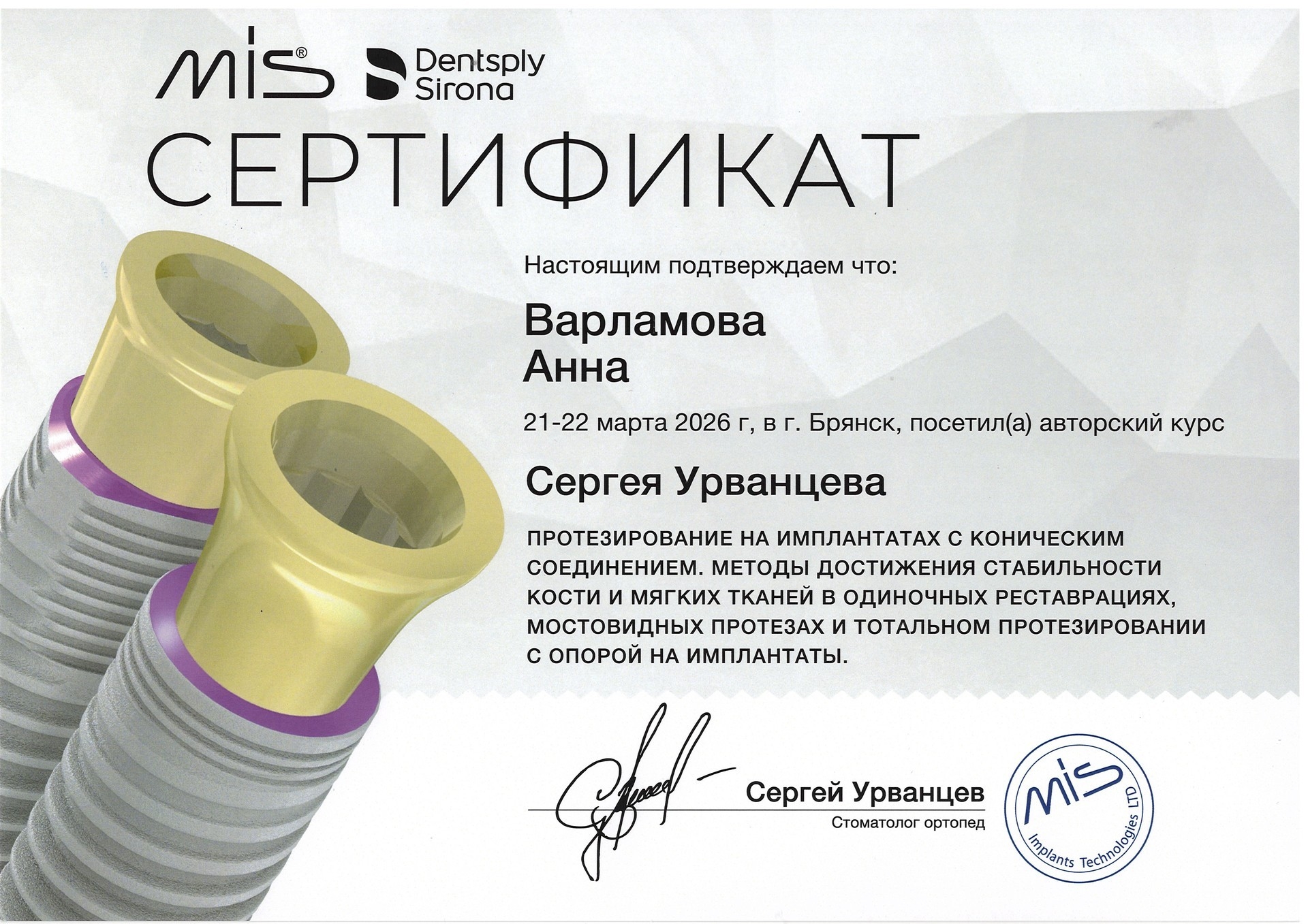 Врач стоматолог-хирург-имплантолог