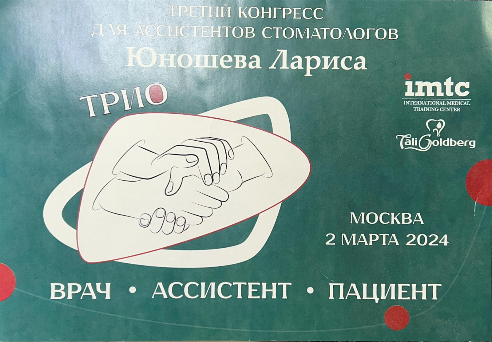 "Обратилась в клинику по рекомендации. Уже с порога была удивлена, что у нас в городе есть клиника такого уровня, в которой предусмотрено всё до мелочей-полная клиентоориентированность! На входе стоят зонтики для посетителей, которые зашли в дождливую погоду, но не взяли зонт, на ресепшене за столиком ожидания бутылки с водой для посетителей, всё в эстетической цветовой гамме: белый с приятно мятно-зелёным. В самом кабинете новейшая аппаратура, приятная музыка, видео-экран, на котором тебе покажут состояние зубов, а во время процедуры включат клипы с песнями. Была я на процедуре вырывания зуба, так аккуратно мне ещё никогда не вырывали, легко, безболезненно. Машина для высасывания слюни не кидалась в полость рта, где все бы в себя всосала, а ассистент аккуратно подходил, когда слюна образовывалась